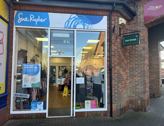 Charity shop in Salisbury's Maltings shopping area.