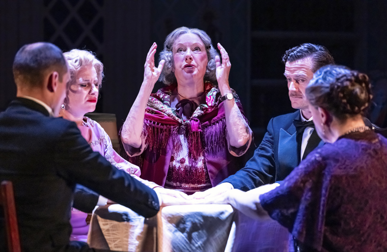 When author Charles Condomine (Adam Jackson-Smith) needs inspiration for his next book, he invites local spiritualist medium, Madame Arcati (Susan Wooldridge) into his home to conduct a séance. In the company of Charles, his wife Ruth (Jenny Rainsford), Dr Bradman (Michael Cusick) and Mrs Bradman (Fiona Tong), Madame Arcati accidentally summons the ghost of Charles’ first wife Elvira (Bridgette Amofah), and an extra-ordinary love triangle ensues. Gabriella Foley as Edith adds another layer of humour to the story as the Condomine’s nervous maid.