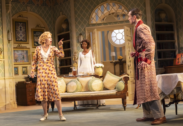 Set in the 1930s, Terry Parsons’ set and costume design are exquisite, with incredible attention to detail. This comes as no surprise as this veteran designer has been working in the field for 57 years, crafting sets and costumes for theatres around the world. Transporting you to a delightful front room adorned with opulent Art Deco design, the bespoke set was, as always, made on-site at Salisbury Playhouse’s workshop by skilled artisans, as were the costumes.