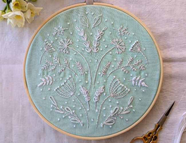 Spend a relaxing morning sewing a Spring design embroidery hoop, and learning skills that you can use to create your own designs at home.