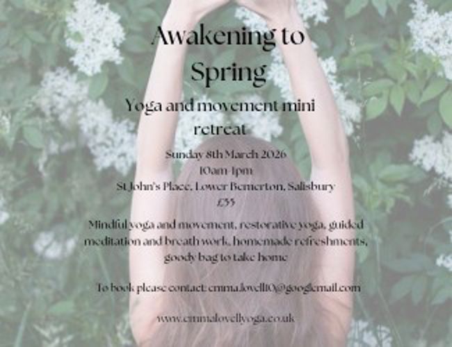'Awakening to Spring' will be held in the beautiful space of St John's Place, Salisbury. Expect a morning of slow and mindful movement, as we gently emerge from the darker months of winter, and move into the light and new growth of spring. I will guide you through restorative yoga, breathwork, and end with a nourishing yoga nidra practice.