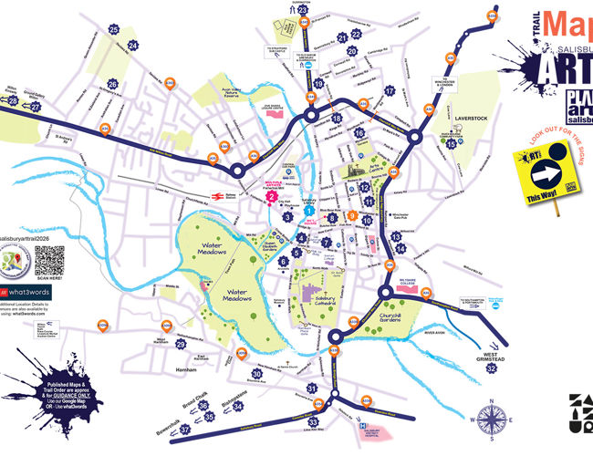 The physical catalogue, including a large pull-out map and loyalty card, will be available FREE at various outlets throughout the city from the beginning of May, including Tourist Information, Salisbury Library, Five Rivers Leisure Centre as well as local shops and businesses. Alternatively, view the digital brochure and Google Map here www.salisburyarttrail.co.uk